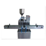 Conveyor type filling and closing machines for filling a variety of different products into various kinds of pre-made cups which may be of plastics, aluminium, carton, coex, tin or glass . The cup sizes can be change-over to an other cup size very quickly. The filling range extends from liquids to high viscosity, powdery products or products with particulates.